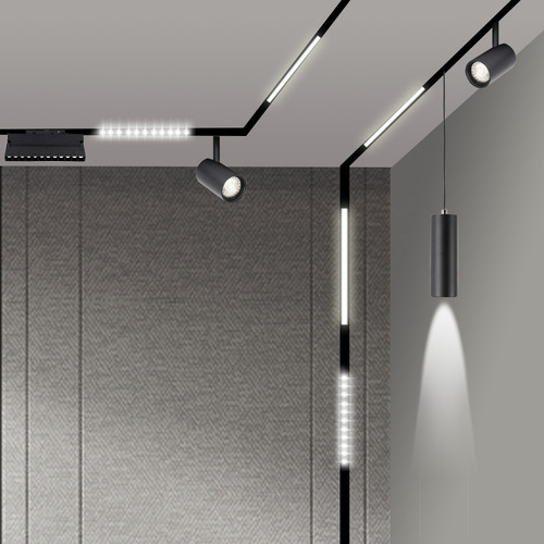磁吸軌道燈,近兩年來非常流行,基本是無主燈設(shè)計中必備的燈具之一。磁吸軌道燈通過磁力來吸附在軌道上。現(xiàn)代磁吸燈,直接讓軌道盒嵌入吊頂里面,然后燈具吸附軌道上,后續(xù)檢修和更換燈具,調(diào)整位置都很方便!